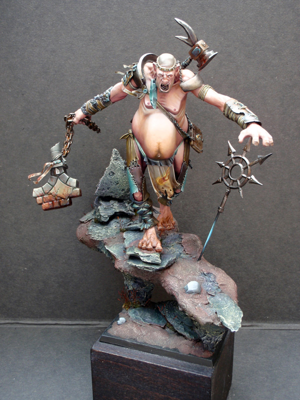 Après avoir réalisé mon géant du chaos, j’ai eu l’idée de faire une seconde version, mais cette fois sous les couleurs de notre très vénérable Empire. Par chance, Miniature Mentor m’a contacté dans le cadre d’un projet visant à peindre un géant… dès fois les calendriers de chacun semble s’accorder pour plaire à tout le monde. Je suis donc parti à Toulouse pour peindre la peau et le visage de ce géant sous l’œil attentif et sans scrupules de la caméra de MM. http://www.miniaturementor.com/painting_tutorials.html